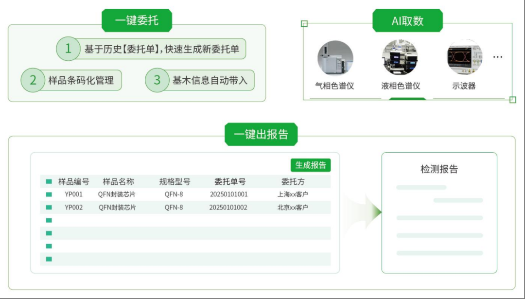 深度集成:無縫對接檢測設(shè)備,實現(xiàn)數(shù)據(jù)自動采集,并關(guān)聯(lián)委托單、分析項、質(zhì)量標(biāo)準(zhǔn)等業(yè)務(wù)模塊,構(gòu)建全流程閉環(huán)管理。