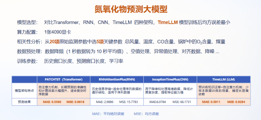 ③氮氧化物預(yù)測大模型:和上一個案例講到的電廠的鍋爐是一樣的,它也有一個煙氣處理的問題,所以說也可以把氮氧化物的預(yù)測模型用到這個地方來。