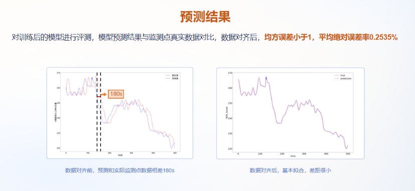 從預(yù)測結(jié)果來看:左圖中,模型對180秒后氮氧化物含量的預(yù)測曲線與實際監(jiān)測曲線幾乎完全重疊(左推3分鐘后對齊),均方誤差小于1,預(yù)測精度已經(jīng)達(dá)到工業(yè)應(yīng)用標(biāo)準(zhǔn)。這個案例充分證明,大模型在工業(yè)過程控制中完全能夠發(fā)揮關(guān)鍵作用。